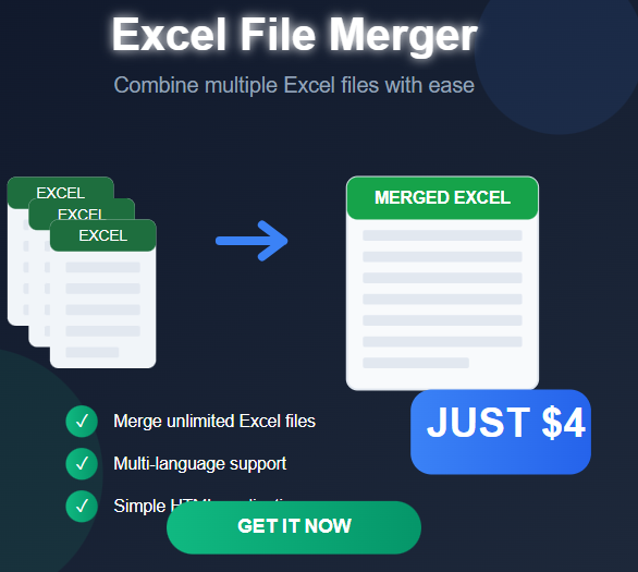 Struggling with multiple Excel files? Wasting time on manual copying and pasting? Here's the perfect solution! With "Excel File Merger," you can combine unlimited Excel files quickly and easily, with multi-language support.